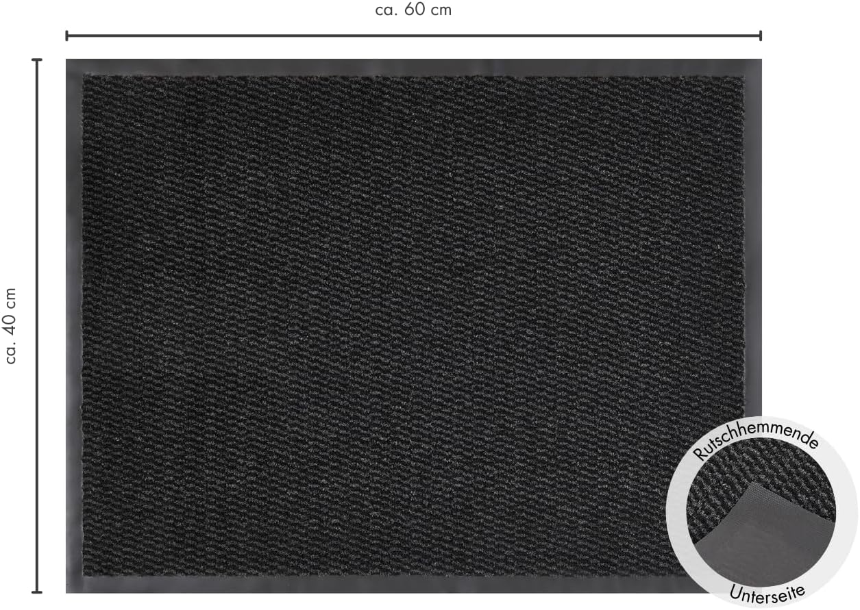 andiamo Simple Doormat for Indoor and Coated Outside Use with Non-Slip Backing 40 x 60 cm Anthracite