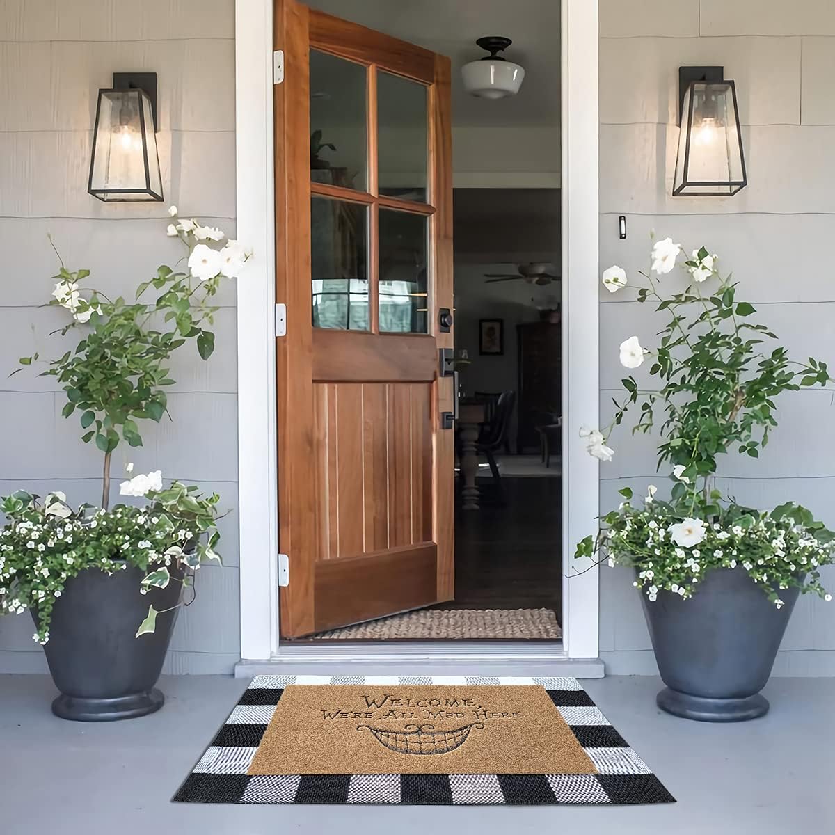 Quality Material and Design:Our door mats outdoor made of high-quality polypropylene and natural rubber backing with funny,exquihttps://multitrendstore.com/ embroidery pattern”Welcome We’re all mad here”,brings you families and guests easy and warm feeling