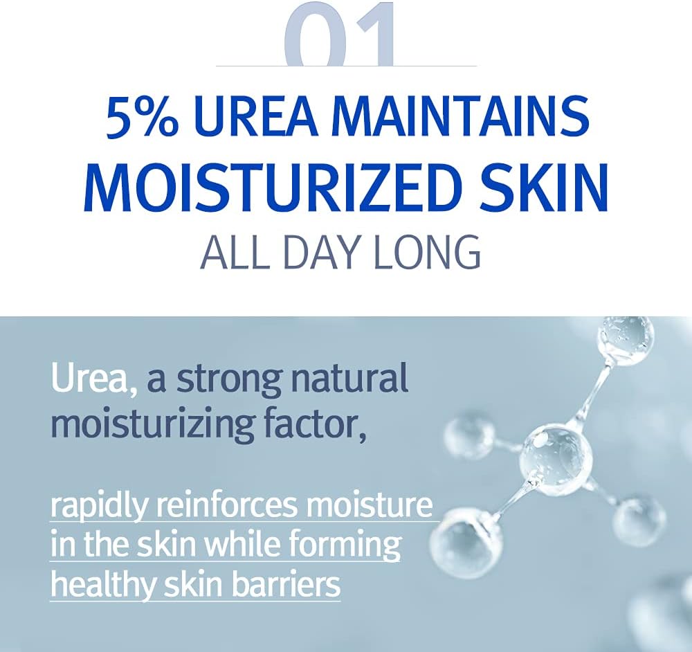 UREA is a natural moisturizing factor that rapidly replenishes the moisture in the skin, maintains it and inhibits the loss of it. Protects the skin for a longer time with skin moisture barriers with no sensation of feeling itchy