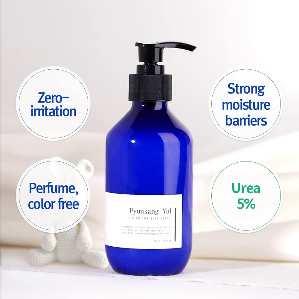 Using Pyunkang Yul ATO Lotion Blue Label is ideal for moisturizing sensitive and dry skin, improving its vitality and delivering a smoother and healthier look.Pyunkang Yul ATO Lotion Blue Label has a smooth texture that offers long lasting moisture, inhibits the loss of moisture and calms irritated skin.